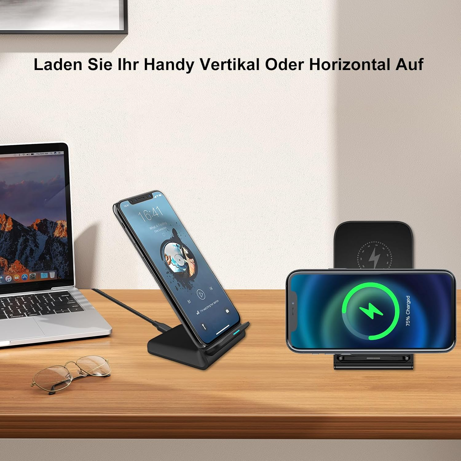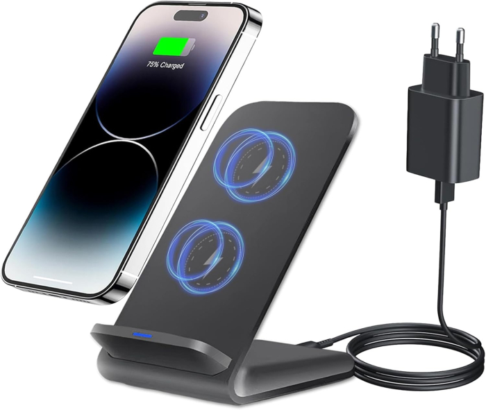 Incarcator Wireless 15W, Qi, USB-C, suport birou, adaptor priza inclus - GRAD A