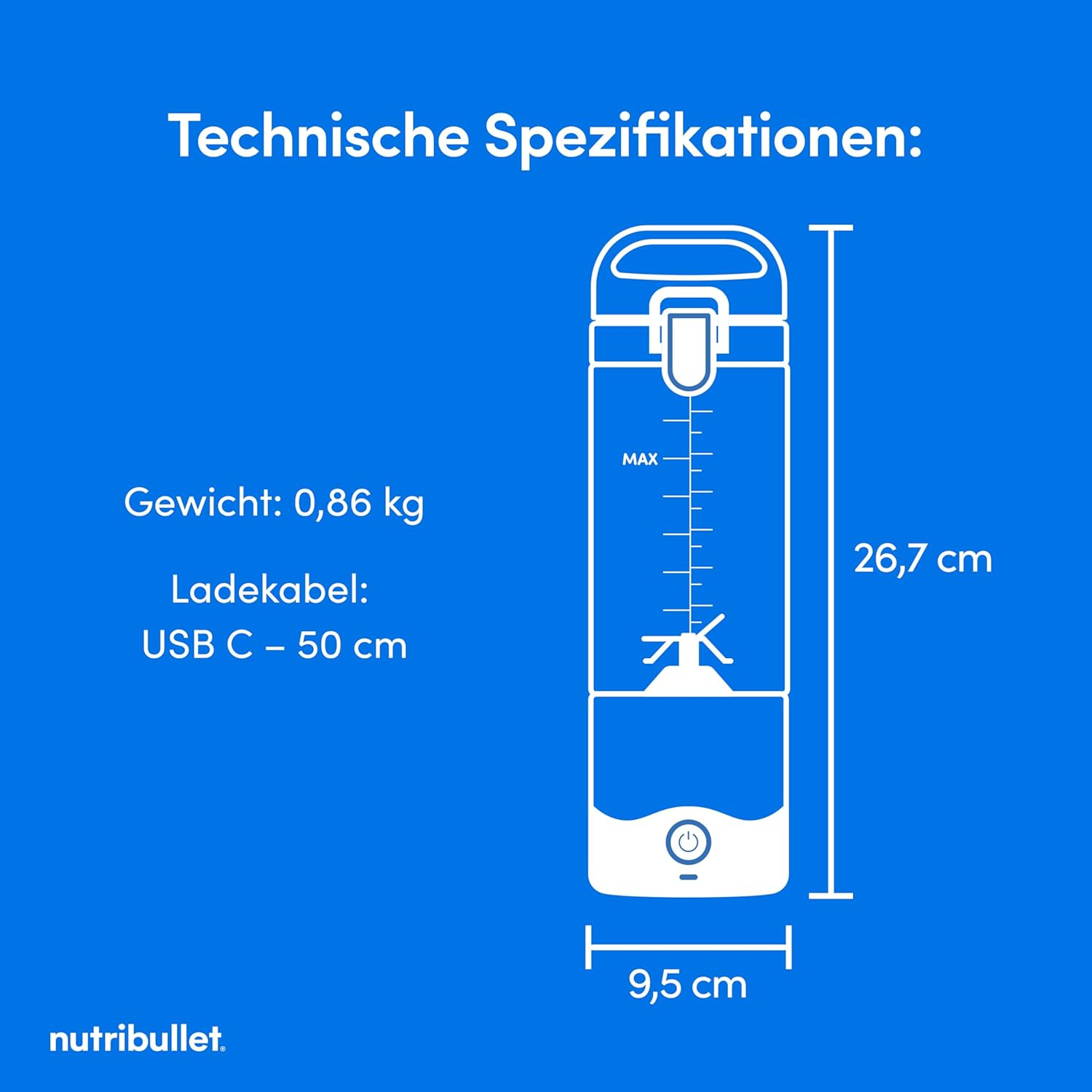 Blender portabil Nutribullet NBP003, cupa 475 ml, USB-C, mov - GRAD A