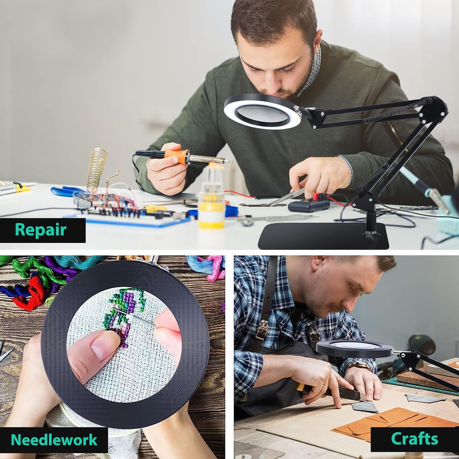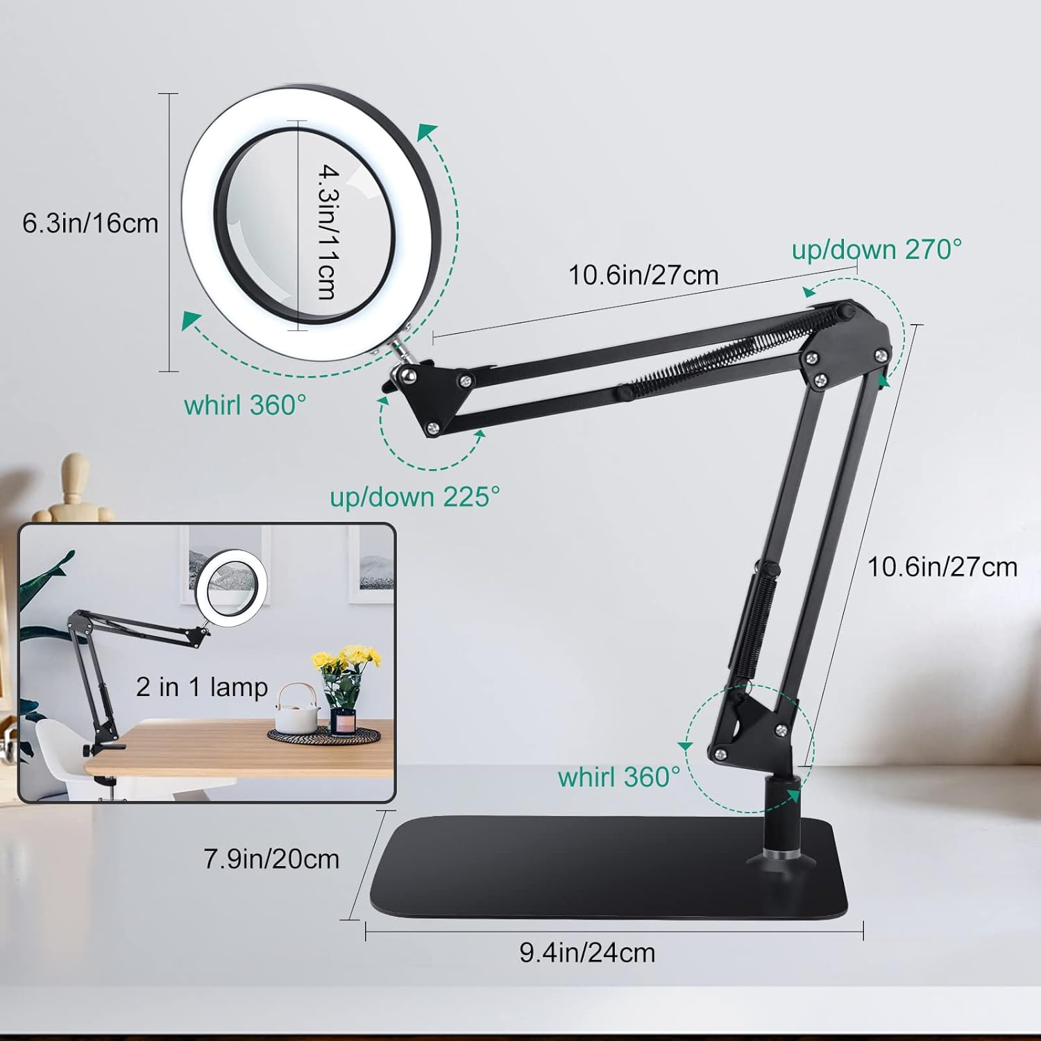 Lupa de masa cu lumina LED, 3 Moduri iluminare, Marire 10x, 2 moduri de prindere, Amazon, Negru - Grad A