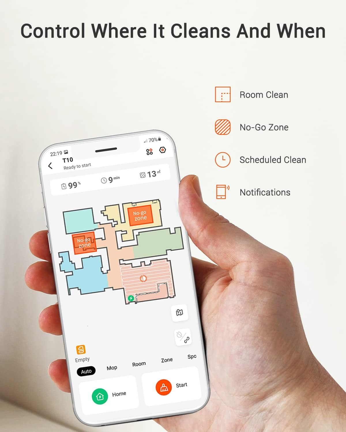 • Operare ușoară în aplicația Ultenic: oriude te-ai afla, poti seta zone, programe de curatenie, multiple harti (pe etaje), zone interzise