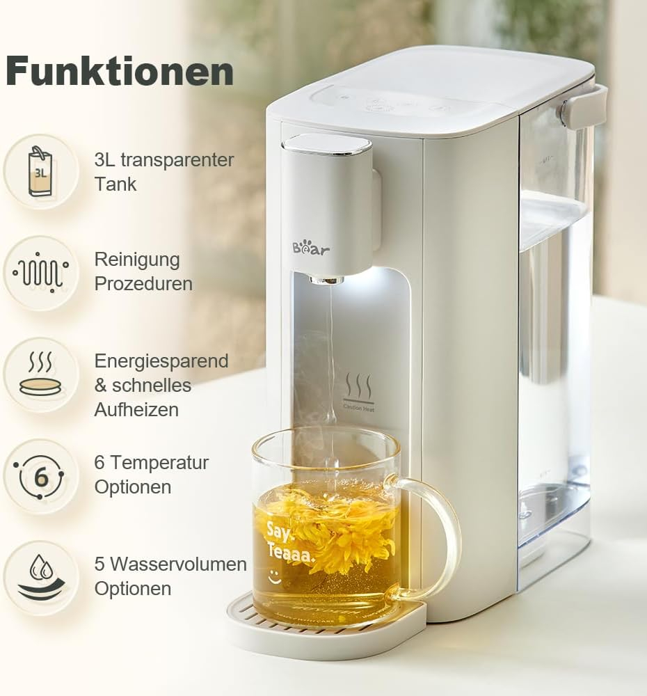 Dispenser apa fierbinte Bear 3 L cu ecran tactil si 6 temperaturi presetate - GRAD A
