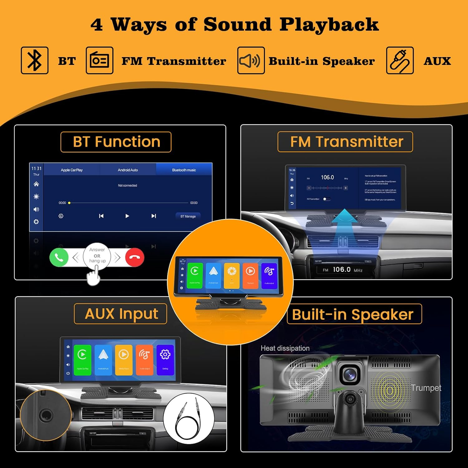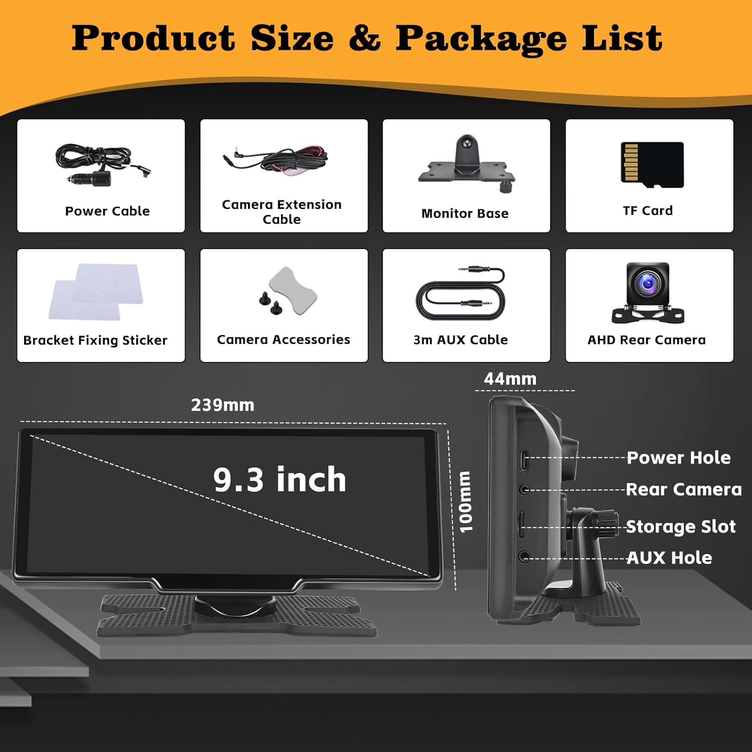 Navigatie Universala Android Carplay display 10.26 inch, camera fata trafic 2.5K, camera spate 1080P, bluetooth, mirror link, FM Transmitter, AUX, Hikity-Amazon - Grad A