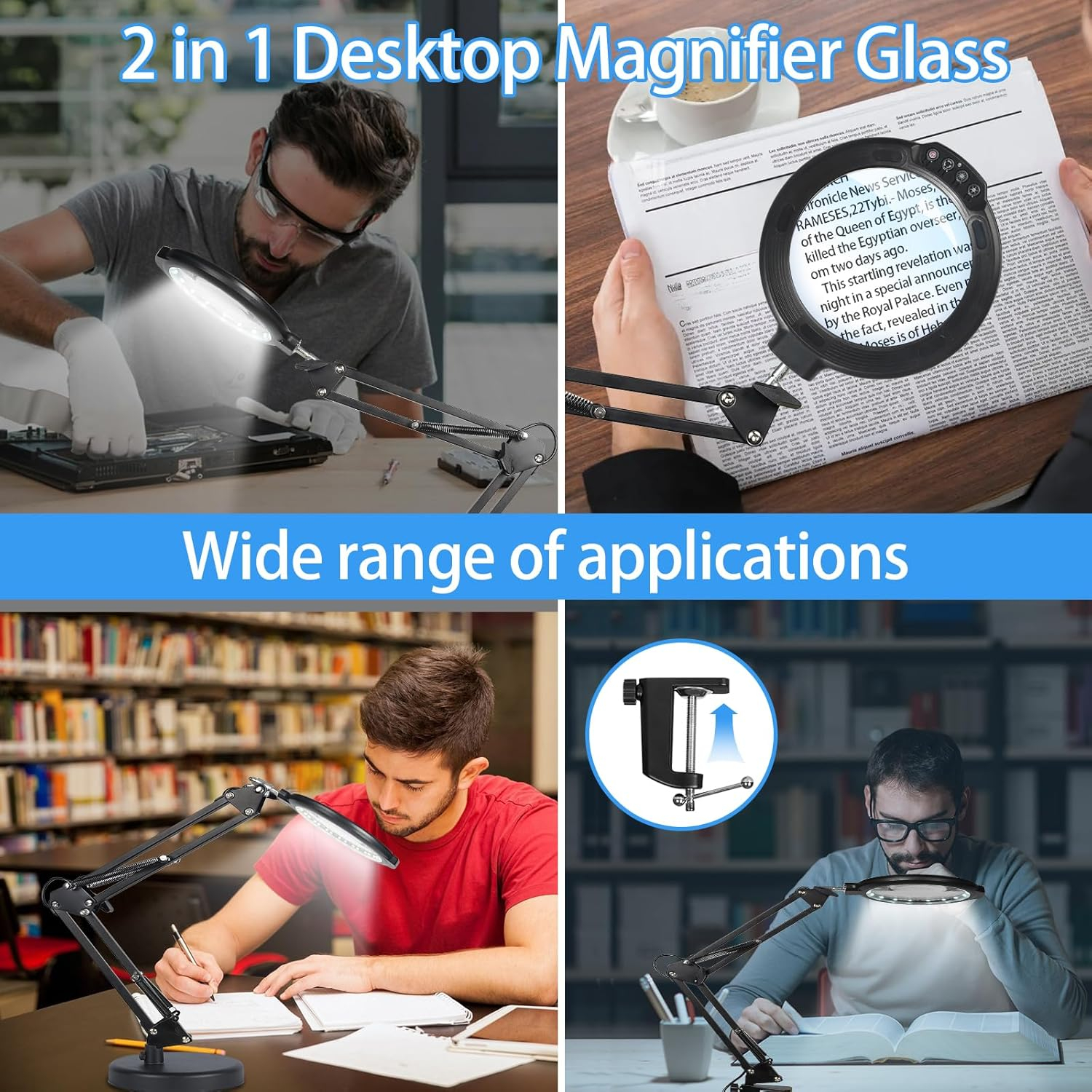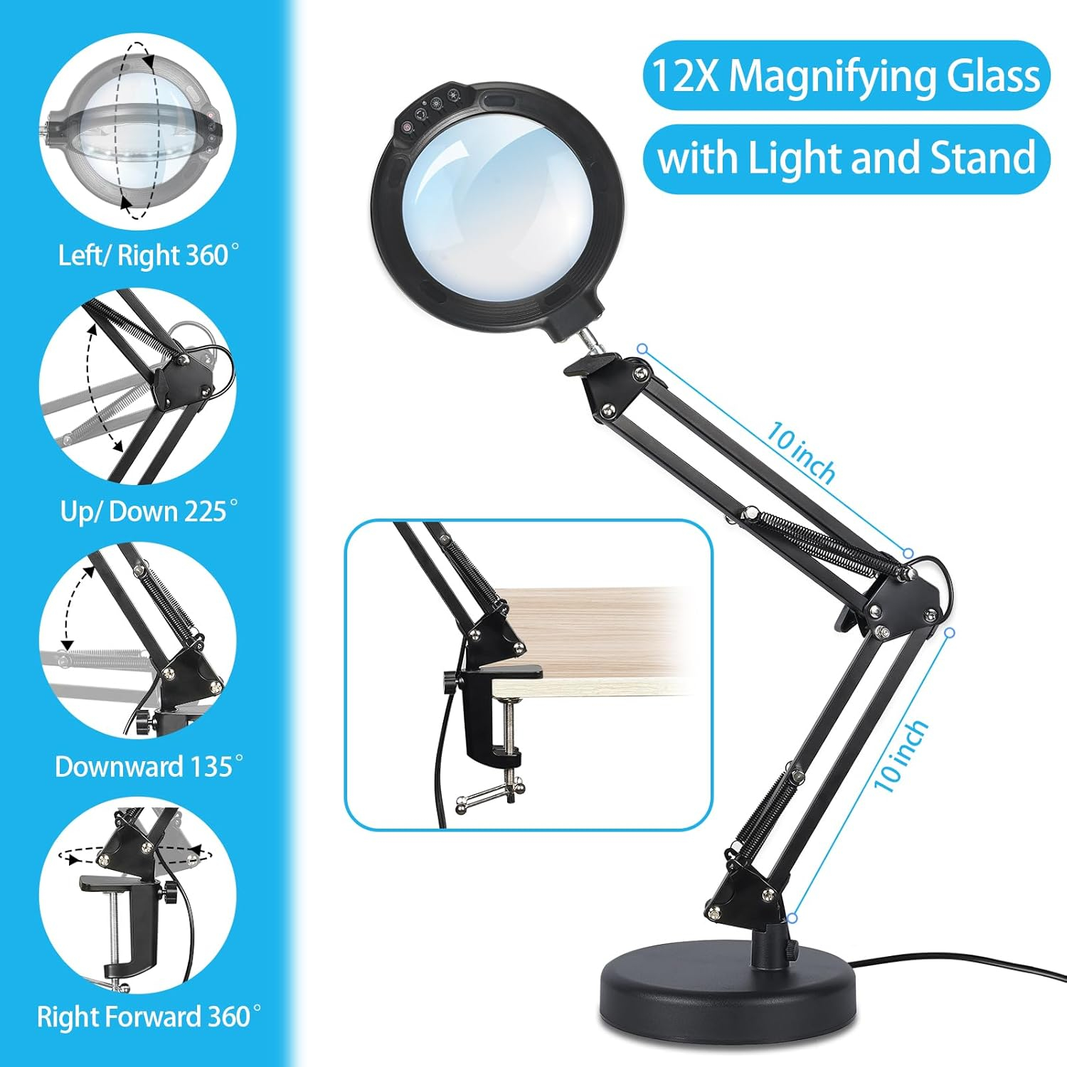Lupa cu lumina LED, 12X , prindere blat sau in suport, 5 moduri de iluminare, 10 trepte de luminozitate - GRAD A