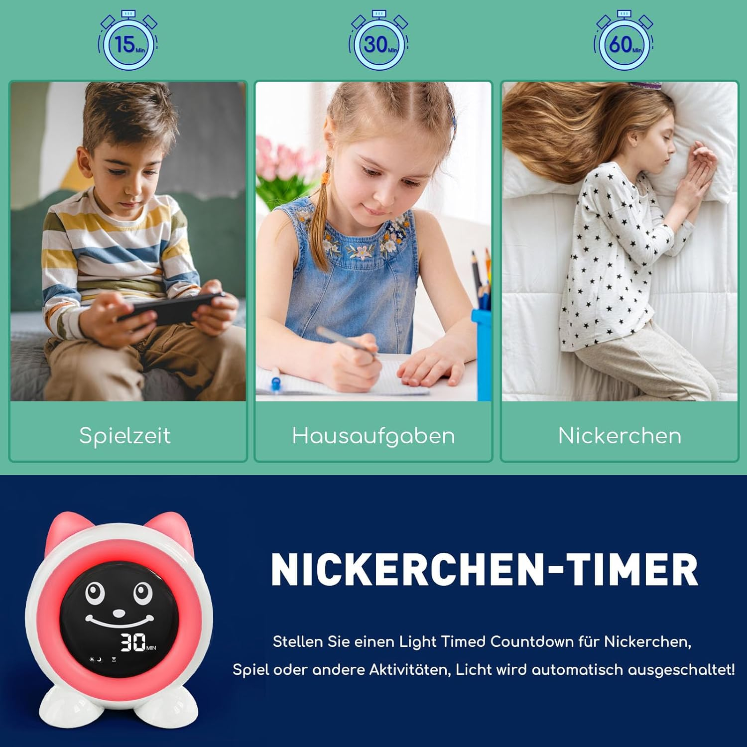 Ceas desteptator pentru copii, lumini LED - GRAD A