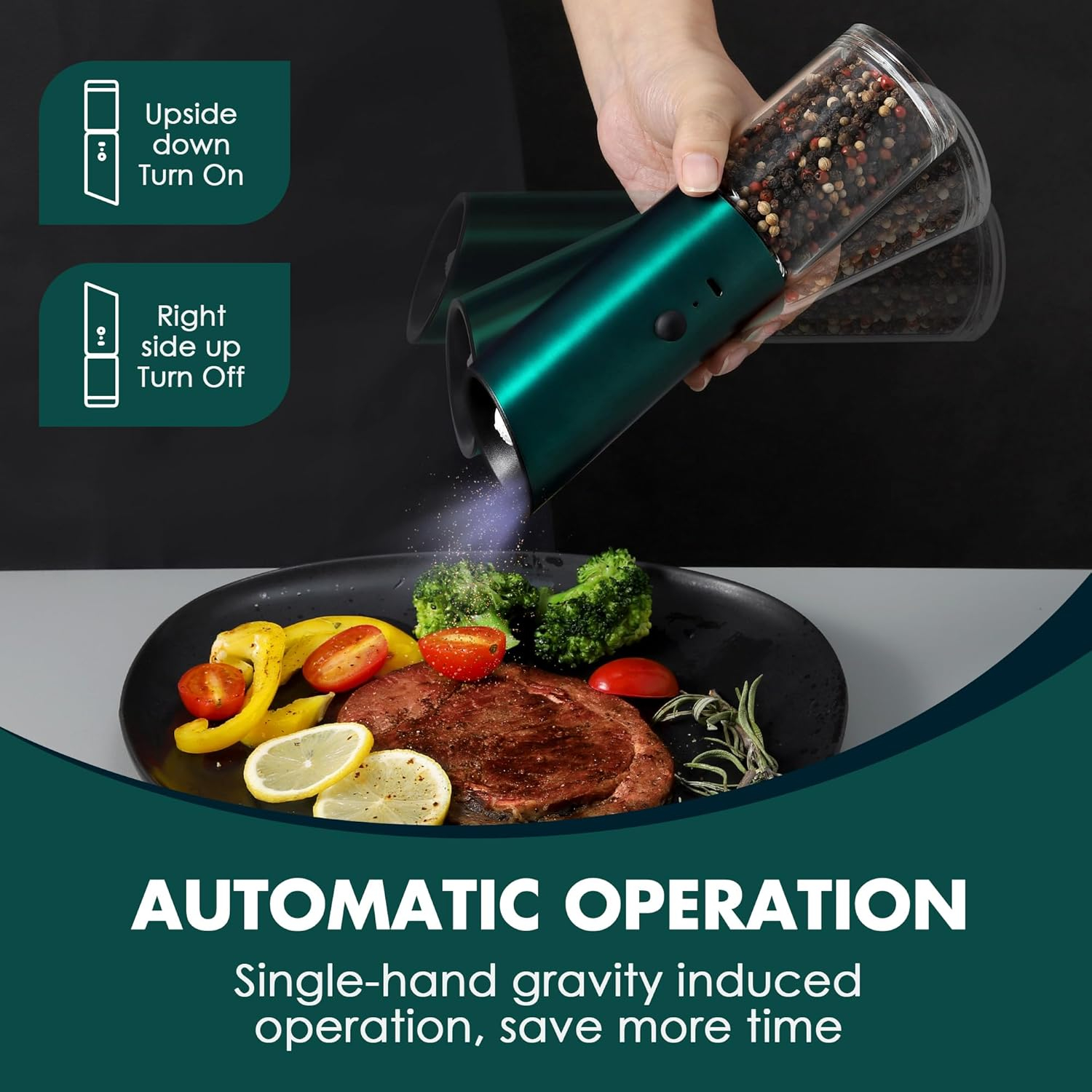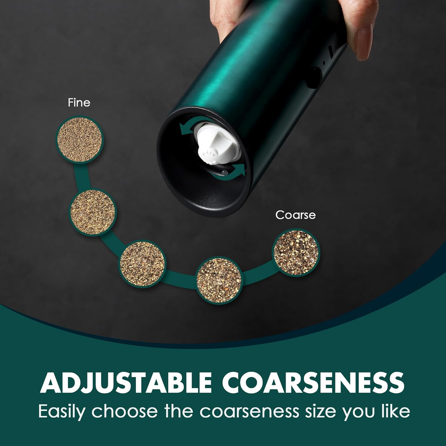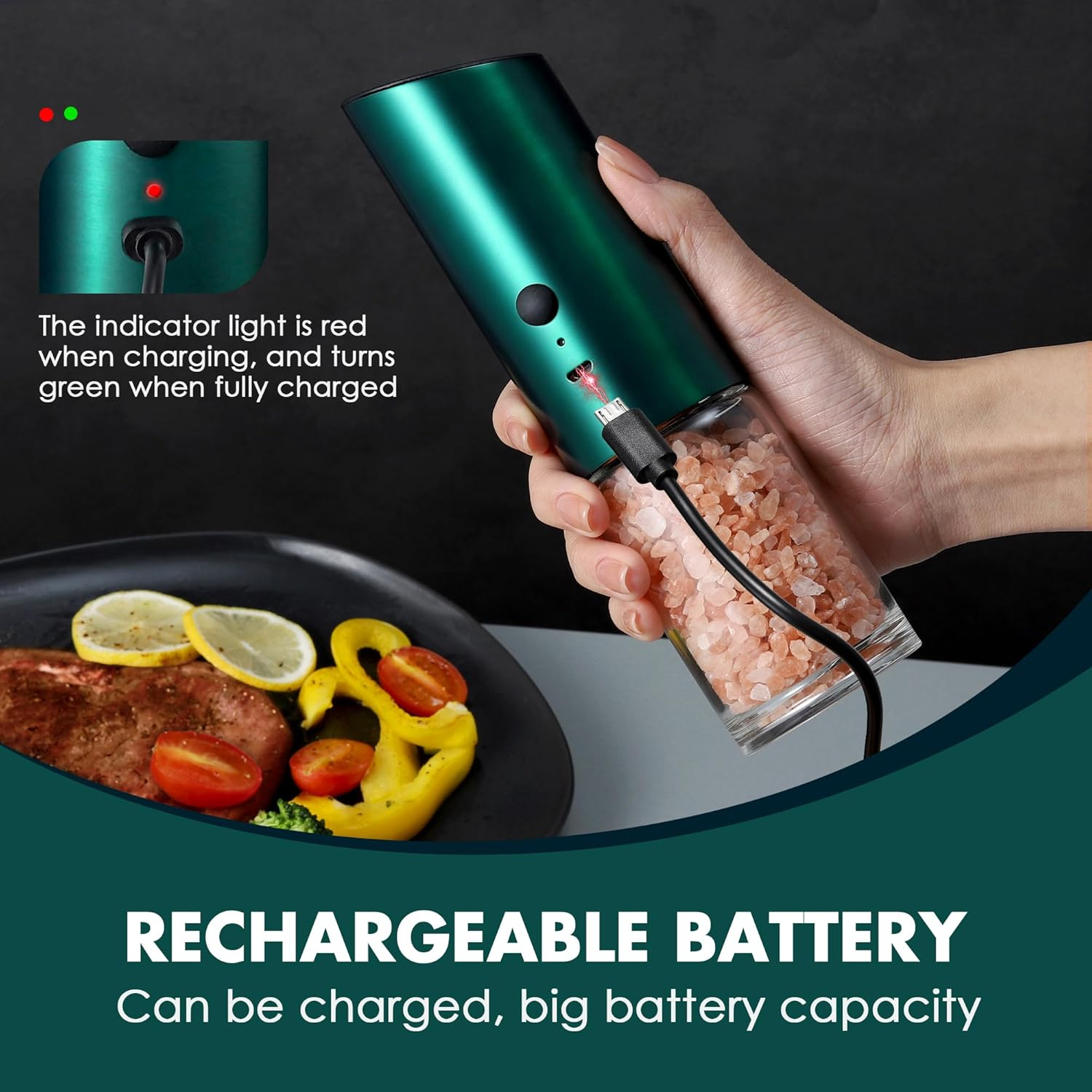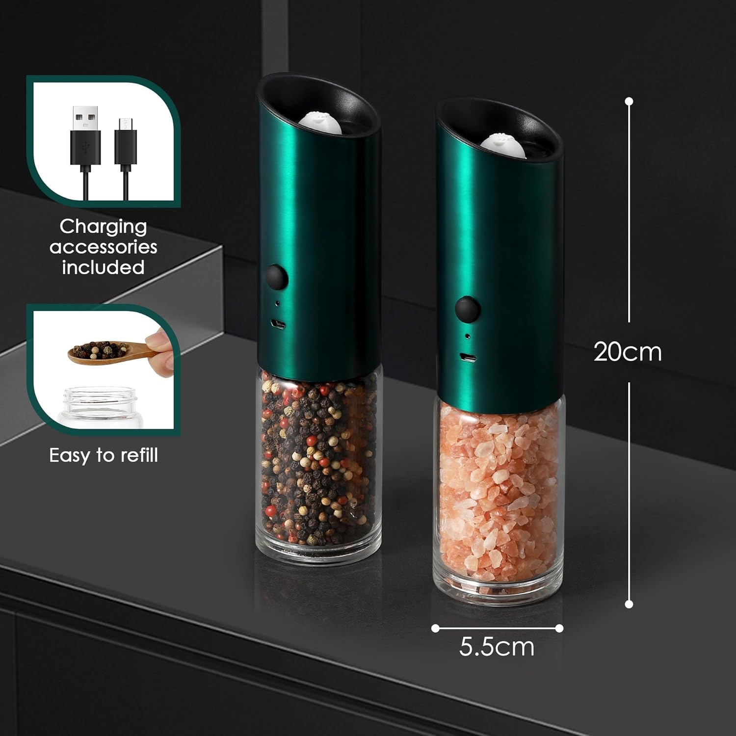 Set 2 Rasnite electrice automate pentru sare, piper, condimente, maruntire reglabila, mecanism ceramic, acumulator Li-Ion, culoare verde - GRAD A