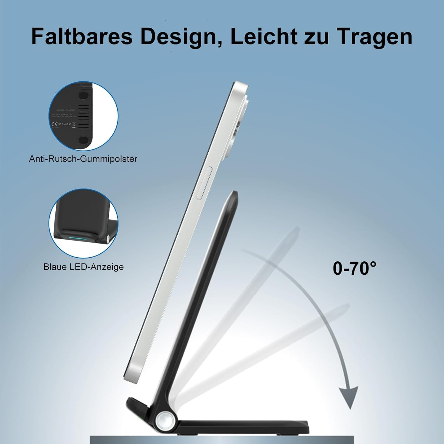 Incarcator Wireless 15W, Qi, USB-C, suport birou, pliabil - GRAD A