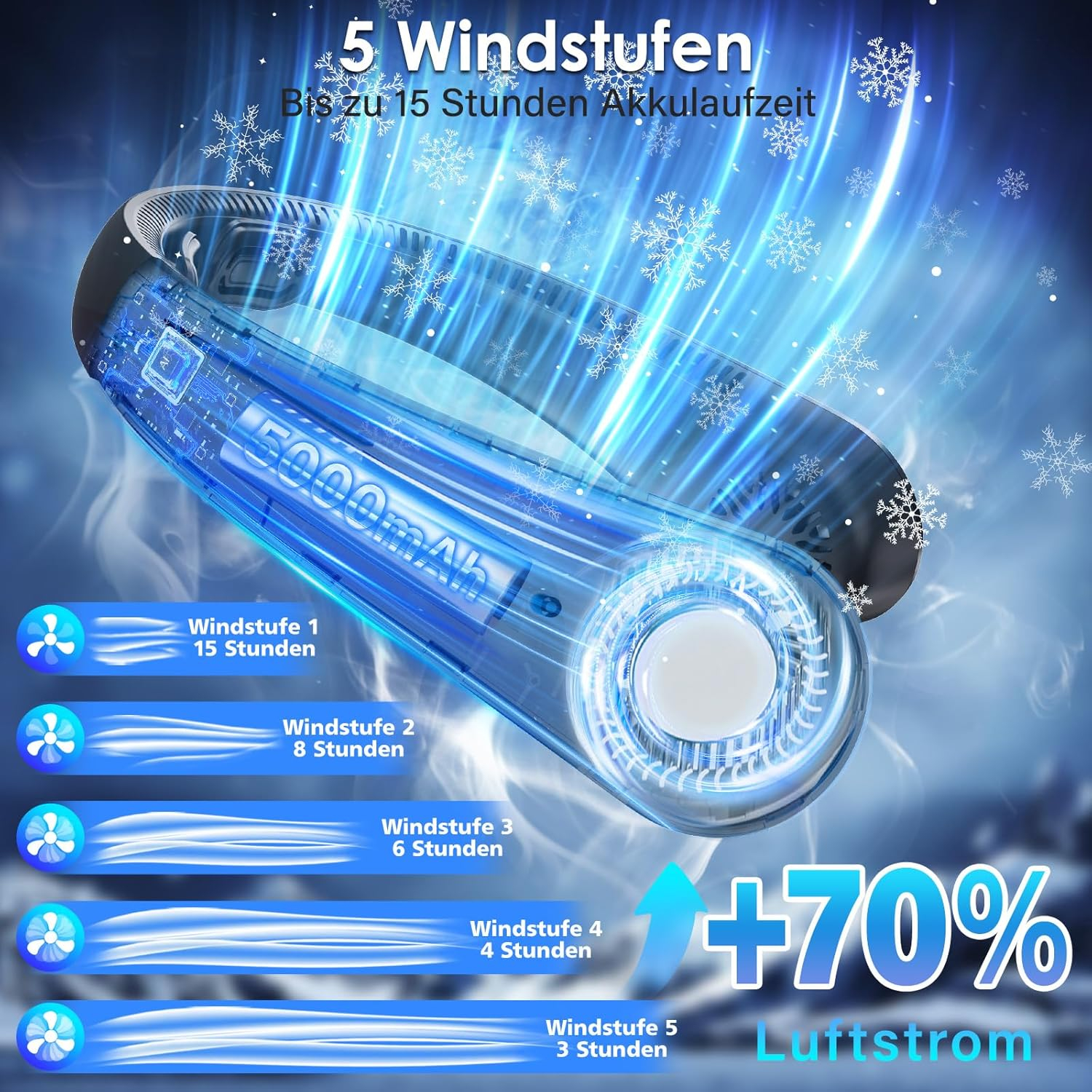 Ventilator de Gat BOIROS, Baterie de 5000mAh, 5 Viteze, Portabil, 296 gr - GRAD A